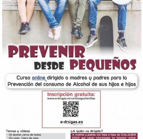 Un año más, a través del Programa Municipal de Prevención de Drogodependencias (Concejalía de Bienestar Social), la Consejería de Sanidad, pone a disposición de las familias el curso online dirigido a padres y madres “Prevenir desde pequeños”, para la prevención del consumo de alcohol de sus hijos e hijas.
