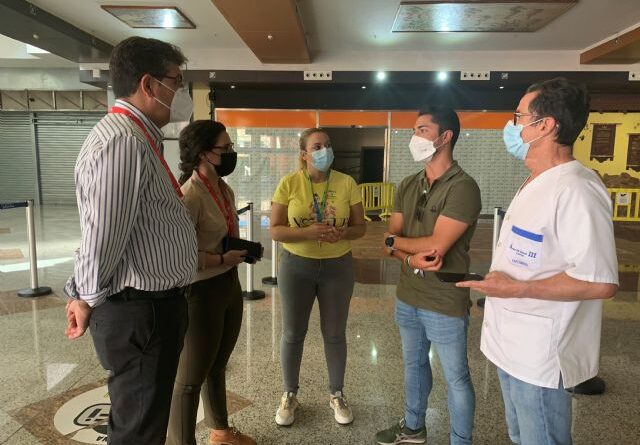 Las altas temperaturas que empiezan a registrarse han hecho que Ayuntamiento y Salud Pública hayan tenido que buscar otra ubicación para las vacunaciones masivas. Por ese motivo, a partir de este viernes, las vacunaciones ya no se realizarán en el Pabellón Diego Calvo Valera, sino en la Segunda Planta del Centro Comercial Águilas Plaza. Así lo ha informado el concejal Cristóbal Casado, quien ha explicado que «el acceso al Punto de Vacunación en el Centro Comercial será peatonal por la puerta norte, por la puerta de arriba, o a través de parking del propio Centro Comercial». Esta misma mañana se reunía con el coordinador de enfermería, Ángel Benítez, la gerente del Centro Comercial, Gema Simó, la gerente de Carrefour Águilas, Marta Tena Ortiz, y el Jefe de Recursos Humanos de Carrefour, Fernando Diez, para ultimar la organización.
