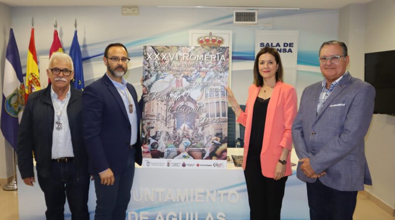 La alcaldesa de Águilas, Mari Carmen Moreno, y el hermano mayor de la Hermandad Rociera de Águilas, Fernando Gallego, acompañados por Miguel Crouseilles y Manolo Gálvez, presentaban en rueda de prensa la Romería Rociera de Águilas que este año hará su particular camino el próximo 27 de abril, conmemorando así la XXXVI edición de un acto que ha logrado convertirse en un referente del calendario festivo local.
