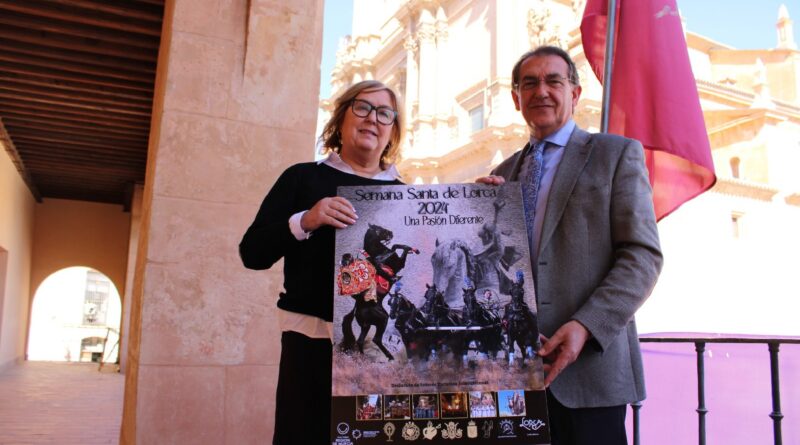 19 de febrero de 2024. El concejal de Turismo del Ayuntamiento de Lorca, Santiago Parra, ha presentado esta mañana el cartel promocional de la Semana Santa de Lorca para el año 2024. “La obra “Arte y fuerza”, realizada por la fotógrafa lorquina Mª José Ruiz Reverte, captura a la perfección la majestuosidad y la esencia única de nuestra Semana Santa, ya que los elementos principales del cartel son el caballo y el bordado”, ha detallado Santiago Parra.