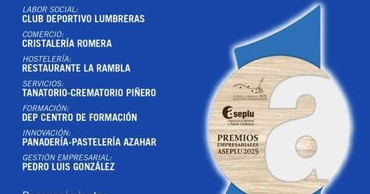 CD Lumbreras, Cristalería Romera, Restaurante La Rambla, Tanatorio Piñero, Pastelería Azahar, DEP Centro de Formación y Pedro Luis González premios ‘Puerto Lumbreras Municipio Emprendedor 2025’
