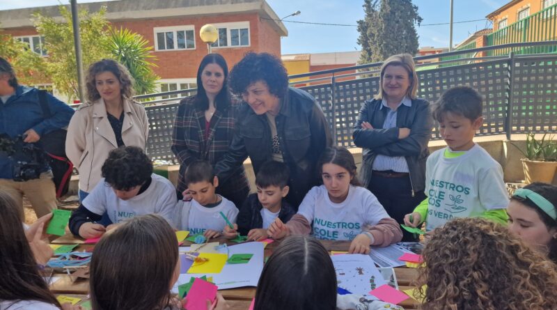 4 de abril de 2024. La alcaldesa de Puerto Lumbreras, María Ángeles Túnez, junto a la directora general de Vivienda y Arquitectura, María Dolores Gil, y acompañadas por las concejales Jerónima Reinaldos y Juana María Pérez han visitado los colegios Sagrado Corazón y Juan Antonio López que, esta mañana, han acogido las actividades del programa GoGreenRoutes. Región de Murcia Seed City.