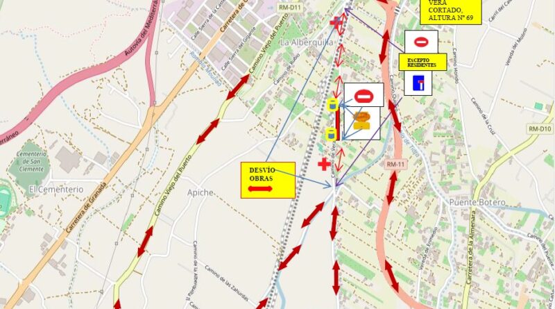 Para suplir este corte, el itinerario alternativo se establecerá, para autobuses escolares y resto de vehículos, procedentes de la ciudad, por Camino Viejo del Puerto y con sentido Puerto Lumbreras, por Camino Real de Vera, la ruta por: la carretera de La Estación, RM-D11, Camino Zahurdas y reincorporación Camino Real de Vera, o viceversa en sentido centro ciudad.