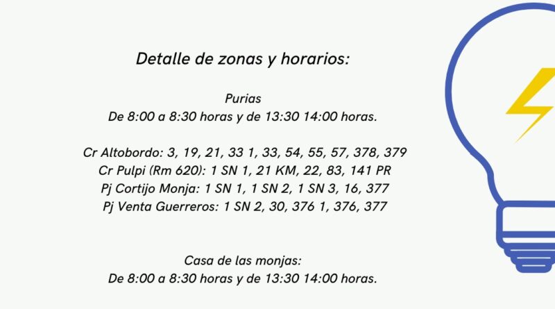 Corte del suministro eléctrico en Casa de las monjas y Purias el próximo 22 de mayo