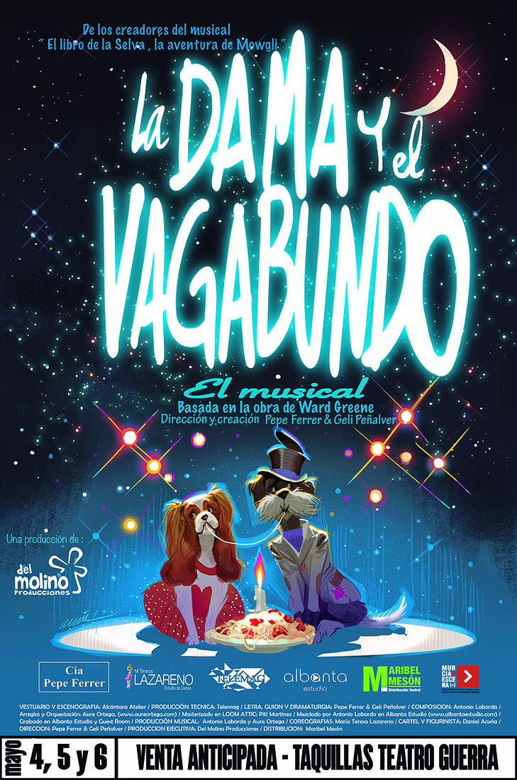 El musical «La Dama y el Vagabundo», una producción de la Compañía El Molino se estrenará el próximo día 4 de mayo en el Teatro Guerra. Esta nueva producción llega tras el rotundo éxito cosechado por la anterior producción de la compañía que acumula en su haber numerosos premios nacionales entre los que destacan el mejor musical infantil y el premio del publico de la prestigiosa revista BroadwayWorld.