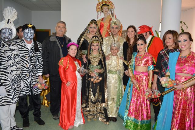 Los personajes adultos e infantiles del Carnaval han visitado esta mañana, acompañados, entre otros, por la alcaldesa de Águilas, Mari Carmen Moreno, el edil de Carnaval, Cristóbal Casado, y el presidente de la Federación de Peñas, José Alonso, el Centro Ocupacional Urci.