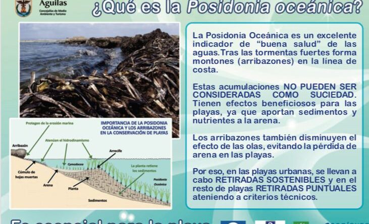 El Ayuntamiento de Águilas ha vuelto a editar los folletos informativos en los que se explica de forma clara los beneficios de lo que popularmente conocemos como algas, así como de las razones por las que cuando esta se acumula en forma de arribazones en la orilla no puede ser retirada de forma inmediata. Se trata de una campaña con la que se busca desterrar de una vez el concepto, sostenido aún por algunos, de que las algas son basura. Y es que, lejos del mal concepto que expresan algunos bañistas sobre la posidonia, la realidad es que estas son indicadoras de la buena salud de las aguas.