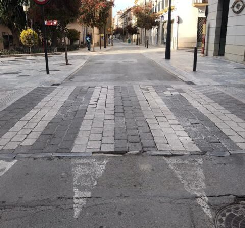 La actuación también contempla la reparación del pavimento de piedra de los pasos elevados de Paso Blanco y Palacio de Guevara, en una superficie aproximada de 45m2, así como la nueva señalización horizontal de toda la calle que se encargarán de pintar desde Policía Local de Lorca.