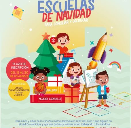 El Ayuntamiento de Lorca oferta un total de 135 plazas para las ‘Escuelas de Navidad para Conciliar y Coeducar’ que se desarrollarán del 24 de diciembre al 7 de enero