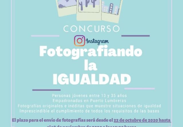 El Ayuntamiento de Puerto Lumbreras convoca un concurso de fotografía a través de Instagram denominado «Fotografiando la igualdad», con objetivo de concienciar sobre la igualdad de género y el rechazo y la prevención de la violencia de género. Una iniciativa que está incluida dentro del programa de actividades con motivo del 25 de noviembre, Día Internacional para la Eliminación de la Violencia contra la Mujer.