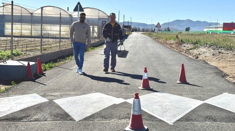 “Esta mañana, el personal de los servicios municipales se encontraba colocando las señales verticales y horizontales en el recién asfaltado camino del Mercado del Ganado”.