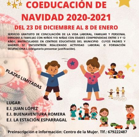 El plazo de presentación de solicitudes está abierto hasta el próximo 22 de diciembre. Los interesados en más información y en realizar la preinscripción pueden llamar al 679 222 487 en horario de lunes a viernes de 09:00 a 14:30 h. La iniciativa también se llevará a cabo en Semana Santa, del 29 de marzo al 5 de abril de 2021, «ya que es en estos periodos no lectivos en los que los padres, las madres y los tutores de los niños y niñas encuentran más dificultades a la hora de compaginar el cuidado de los menores y trabajar», ha expresado Toñi Navarro.