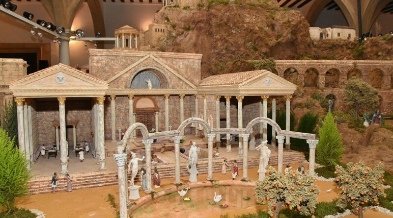En la maqueta aparecen zonas de mucha vegetación, junto a monumentos hídricos. “Este año el belén incluye distintas recreaciones de monumentos relacionados con el líquido elemento. El acueducto romano de Almuñécar, considerado el mejor conservado de Andalucía. El puente romano sobre el arroyo Pedroches, en Córdoba. Unas termas romanas con inspiración de las desaparecidas de Caracalla o las de Bath, todas ellas, acompañadas de ríos, fuentes y estanques”.