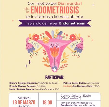 Ponce Díaz ha especificado que «en este acto participarán la presidenta de Endo+, Bibiana Grajales; la psicóloga, Ernesta Navarro; la investigadora de la Universidad de Murcia, María Martínez y la nutricionista Patricia Sastre, todo ello moderado por Ana Blázquez, integrante de la Federación de Organizaciones de Mujeres de Lorca».