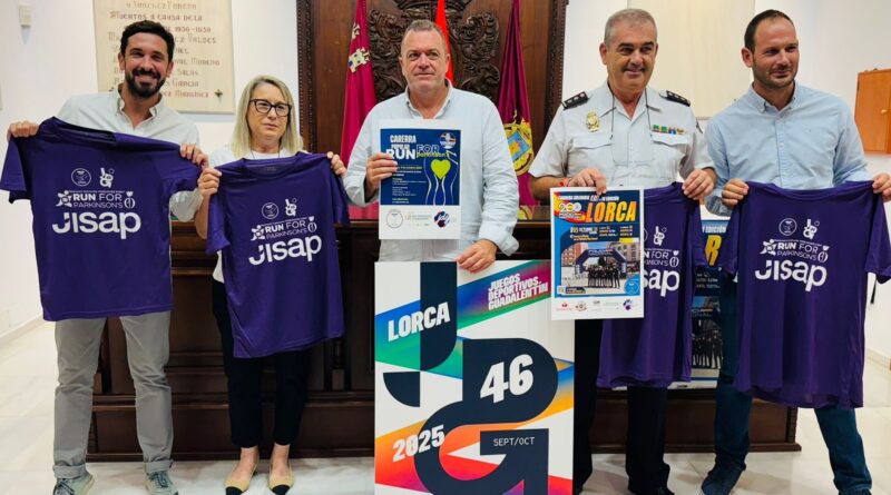 Lorca, 30 de septiembre de 2025. Los 46º Juegos Deportivos del Guadalentín (JDG) acogerán el próximo domingo 5 de octubre una nueva edición de la carrera solidaria Run for Parkinson’s (Corre por el Parkinson), a beneficio de la Asociación Lorquina de Parkinson (ASLEP). La cita, organizada por la Concejalía de Deportes del Ayuntamiento de Lorca en colaboración con la Policía Nacional, dará comienzo a las 10:00 horas con salida y meta desde la Plaza de la Policía Nacional (El Gato). La carrera se integra dentro de la Ruta Solidaria 091 de Policía Nacional y supone la última prueba del vigésimo tercero Circuito Local de Carreras Populares de Lorca, iniciado en noviembre de 2024. En la presentación han participado el concejal de Deportes, Juan Miguel Bayonas, el comisario de Policía Nacional, Pedro Montiel, y la presidenta de ASLEP, Isabel Morales, quienes han destacado el carácter solidario y festivo de esta cita deportiva.