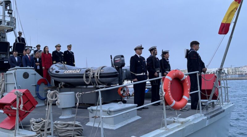 Durante su escala, al ocaso, se celebró el solemne acto de arriado de bandera en el que participaron la alcaldesa de la localidad, Mari Carmen Moreno, y el edil de Seguridad Ciudadana, Cristóbal Casado.