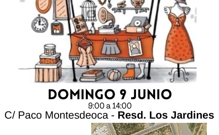 La Junta Municipal del Residencial Los Jardines ha organizado, con la colaboración de la Concejalía de Participación Ciudadana del Ayuntamiento de Águilas, la octava edición de “Vacía los trasteros”. El mercadillo vecinal, en el que se podrán adquirir objetos de segunda mano, se celebrará el domingo 9 de junio, de 9 a 14 horas, en el residencial Los Jardines. Para inscribirse al mismo como vendedor es necesario ponerse en contacto con los teléfonos 628 287 800 ó 616 414 318.