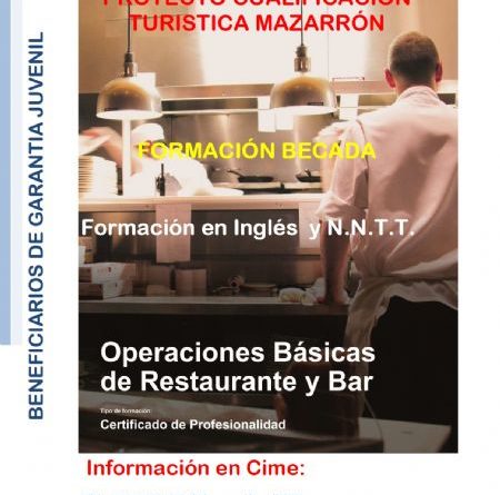 El próximo mes de abril dará comienzo el Proyecto de Cualificación Turística que pone en marcha la Concejalía de Empleo y Desarrollo Local en las instalaciones del Centro de Iniciativas Municipales de Empleo (CIME) de Mazarrón. La iniciativa formadora irá destinada a 15 beneficiarios de del Sistema de Garantía Juvenil. El proyecto, financiado por el Fondo Social Europeo, formará a los alumnos en materia de hostelería, nuevas tecnologías e inglés. Los alumnos que asistan al curso recibirán una beca por asistencia de 180 euros.