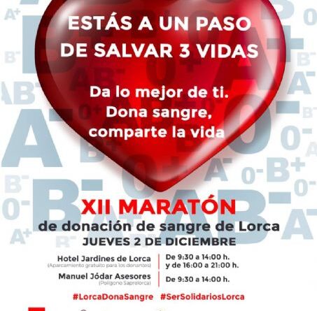 El Primer edil ha detallado que «esta cita con la solidaridad tendrá lugar el próximo jueves, 2 de diciembre, en dos espacios diferentes. Este año, como novedad, será el Hotel Jardines de Lorca una de las infraestructuras que acoja esta maratón de donación de sangre, en horario de 9.30 horas a 14:00 horas y de 16:00 a 21:00 horas».
