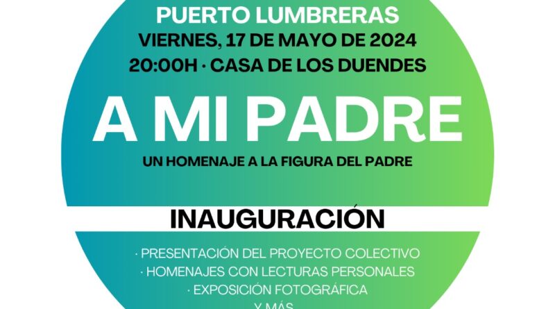 La edil de Cultura ha explicado que “el próximo viernes, 17 de mayo, la Casa de los Duendes, se expondrá el proyecto abierto “Homenaje a mi padre”, organizado por el Grupo AMM y AMP (A mi madre y a mi padre)”.