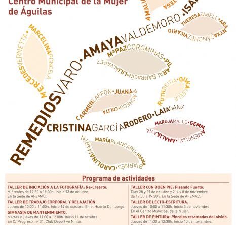 – Taller con buen pie: pisando fuerte (28 y 28 de octubre y 2, 4 y 8 de noviembre en la sede de Afemac).