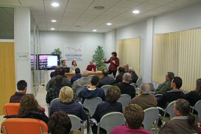 La directora general de Fondos Agrarios y Desarrollo Rural, Carmen Mª Sandoval, y la alcaldesa de Puerto Lumbreras, Mª Ángeles Túnez, se reunieron anoche con vecinos de La Estación-Esparragal para informar del inicio de las obras del camino Vera.