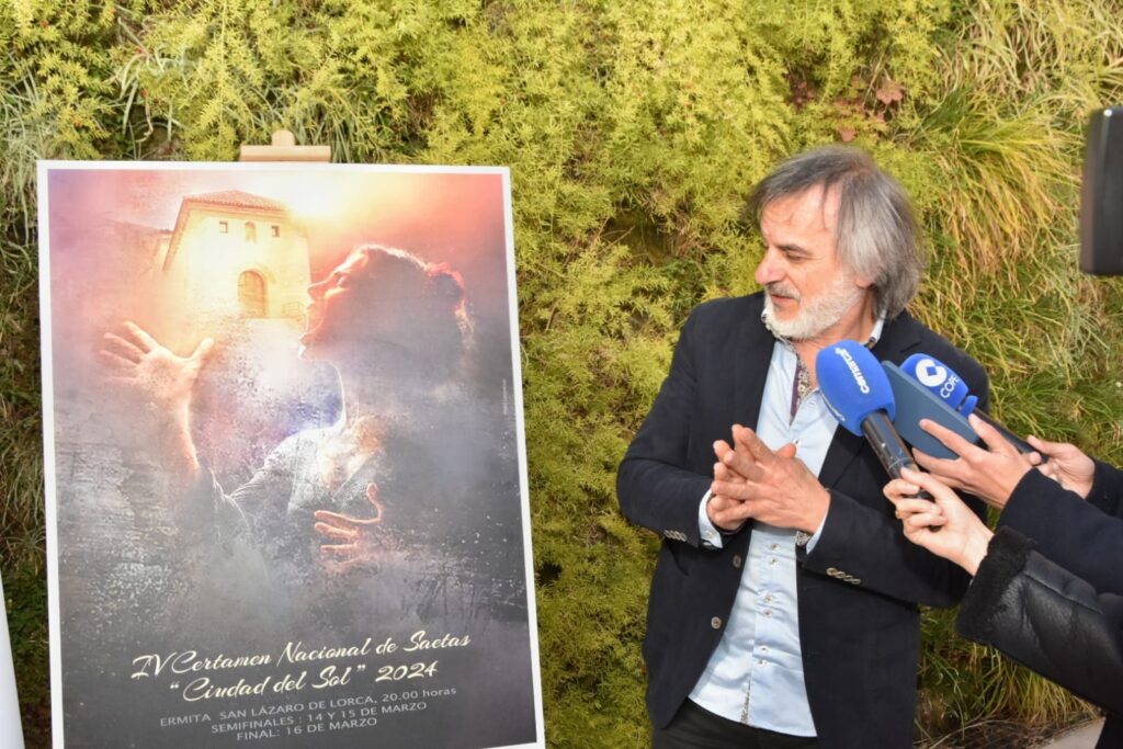 8 de marzo de 2024. “La Ermita de San Lázaro será el escenario de la cuarta edición del Concurso Nacional de Saetas “Ciudad del Sol”, organizado por la Peña Cultural Flamenca de Lorca en colaboración con el Consistorio lorquino y el Instituto de Turismo de la Región de Murcia”. Así lo ha anunciado en la mañana de este viernes el edil de Cultura, Santiago Parra, durante la presentación del mismo, a la que también han asistido el director general de Turismo de la Región de Murcia, Juan Francisco Martínez, y el presidente de la Peña Cultural Flamenca “Ciudad del Sol”, Cayetano Padilla.