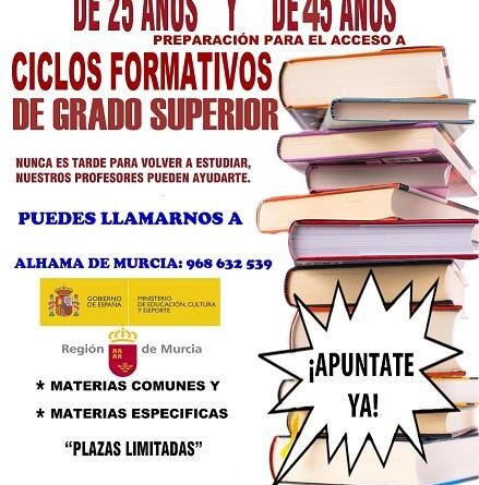 La Escuela de Adultos de Totana informa que el plazo para las matrículas para la prueba de acceso a la universidad para mayores de 25 y 45 años será del 4 al 10 de febrero; y el de la prueba de acceso a ciclos superiores del 13 al 31 de enero.