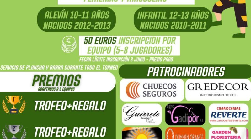 Podrán participar alevines e infantiles, niños y niñas de entre 10 y 11 años y 12 y 13 años, respectivamente. Y es necesario inscribir a los equipos, de entre 5 y 8 jugadores, a través del número de WhatsApp 669592025 antes de 3 de junio