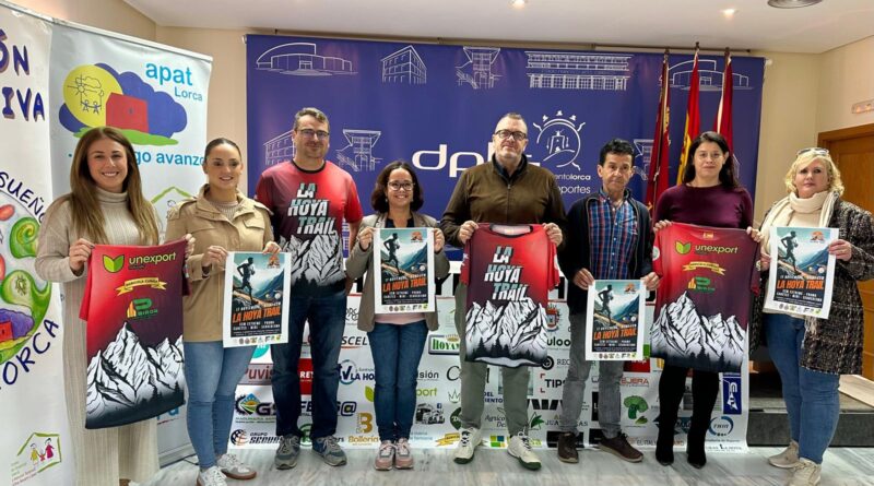 Lorca, 12 de noviembre de 2024. La pedanía lorquina de La Hoya acoge el próximo domingo 17 de noviembre la quinta edición de la carrera solidaria de montaña ‘La Hoya Trail (LHT)’ que organiza el club deportivo APAT Lorca-Cumpliendo Sueños con la colaboración de la concejalía de Deportes y que se celebra a beneficio de la Asociación de Madres y Padres de Atención Temprana (APAT). La prueba, que está incluida en la liga regional de carreras por montaña de la Federación de Montaña de la Región de Murcia (FMRM), ha sido presentada esta mañana por el concejal de Deportes, Juan Miguel Bayonas; la presidenta de APAT, Eva María Guerrero; y el responsable de la prueba, Antonio López Martínez.