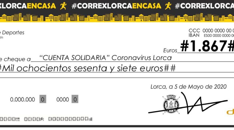La prueba confinada #CorrexLorcaEnCasa recauda 1.867 euros que irán destinados a la Cuenta Solidaria para la lucha contra el coronavirus en Lorca