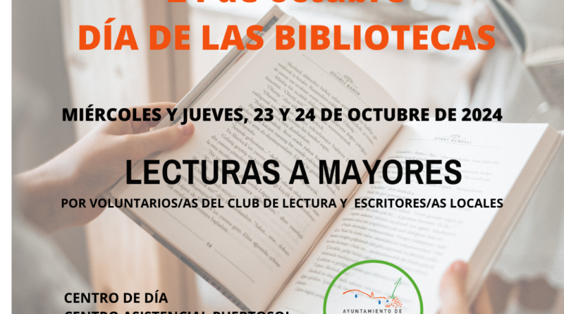 La Red de Bibliotecas de Puerto Lumbreras celebra su día acercando la lectura a los mayores de municipio los días 23 y 24 de octubre