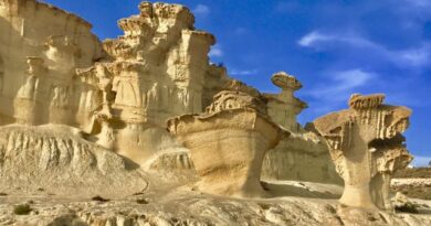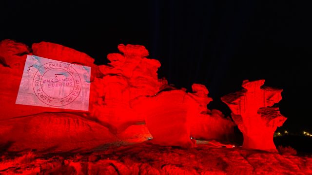 Uepemur, la Unión de Empresas Productoras de Eventos en la Región de Murcia, a través del movimiento mundial ‘Alerta Roja’ por la unificación sectorial de la industria del espectáculo y los eventos, iluminó ayer el monumento de las Erosiones de Bolnuevo para visibilizar la dramática situación que atraviesa el sector.