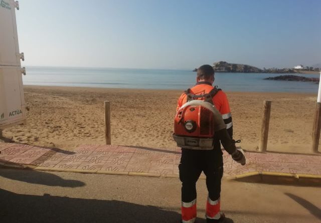 En tres días se ha finalizado con estos trabajos en las playas del Rihuete, el Paseo, la Ermita, Bahía y la Reya, así como en la zona del mirador ‘Agustín López Cano’. Trabajos que se realizarán periódicamente consistentes en retirada de malas hierbas, malezas, envases, devolución de arena a la playa, etc. Este mismo Jueves le toca el turno a la playa de Bolnuevo, el viernes a la playa del Alamillo y así sucesivamente hasta que estén todas terminadas.