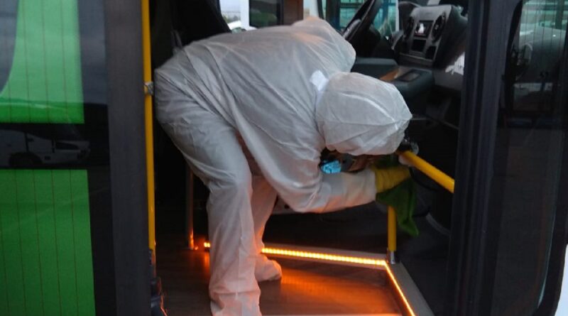 Especial atención merece el dispositivo aplicado a la desinfección del transporte colectivo urbano, por ser el más propenso al uso colectivo. A medidas higienizantes propias de la seguridad para el trabajador tales como señalización de distancia al conductor, primera fila de asientos vacía y la gratuidad para evitar la transferencia por metal… se le suma la protección del usuario. Para ello, en cada inicio de jornada se aplica un tratamiento desinfectante integral que incluye tanto el puesto del conductor como barandillas, pasamanos y asientos. Y en cada kilómetro cero del trayecto se vuelve a limpiar toda superficie de contacto.