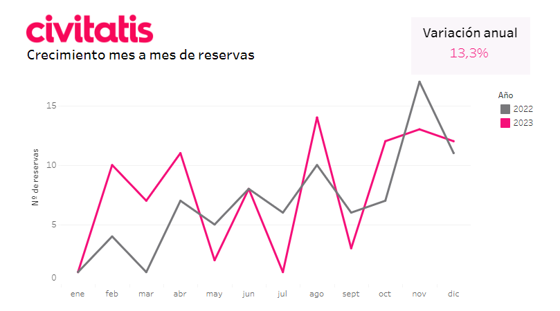 Según esta empresa, dirigida y fundada por Alberto Gutiérrez, el año pasado, la localidad de Lorca obtuvo un 13,3 % más de visitantes durante 2023. El mayor pico de visitas tuvo lugar en agosto, época estival.