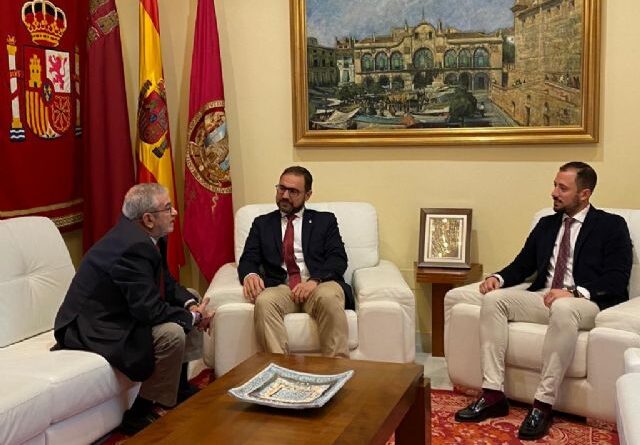 El alcalde de Lorca, Diego José Mateos, junto al vicealcalde, Francisco Morales han recibido esta mañana en el Ayuntamiento al presidente de la Asamblea Regional, Alberto Castillo,