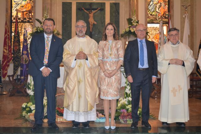 Posteriormente daban comienzo los actos con una solemne misa concelebrada y presidida por Emilio Andrés Sánchez, rector del Santuario de la Veracruz y pregonero de la Semana Santa aguileña.