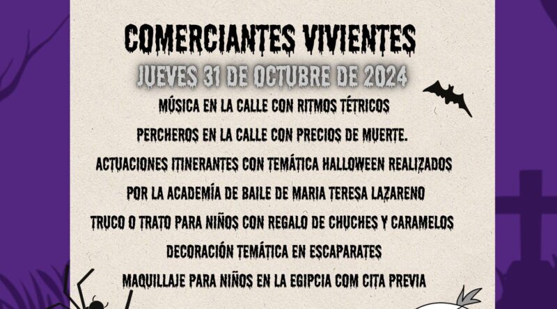Asimismo, los comerciantes del casco histórico llevarán a cabo también otras actividades de animación infantil con el objetivo de que los niños que quieran puedan recorrer tiendas y comercios de esta zona de la ciudad para pedir ‘Truco o trato’ para recoger caramelos y chucherías. Además, esta área comercial realizara otro tipo de actividades tanto para niños como para adultos musicales en la calle; decoración de escaparates con temática de Halloween; maquillaje para niños en el Centro de Estudios de La Egipcia (con cita previa) y percheros con grandes descuentos en diversos artículos.