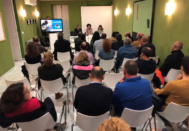 El director general de Ordenación del Territorio, Arquitectura y Vivienda, José Antonio Fernández Lladó, y la alcaldesa de Puerto Lumbreras, Mª Ángeles Túnez, mantuvieron anoche una reunión con vecinos del municipio para dar a conocer las ayudas del Plan de Vivienda de la Región de Murcia 2018/2021.