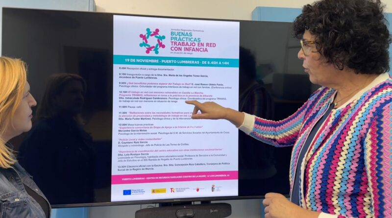 3 de noviembre de 2025. La alcaldesa de Puerto Lumbreras, María de los Ángeles Túnez, ha anunciado la celebración de las Jornadas Regionales Formativas ‘Buenas prácticas. Trabajo en Red con Infancia en Situación de Riesgo’.