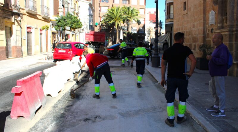El pavimento de la calzada en la puerta de la iglesia de San Francisco, en la calle Nogalte, presentaba desde hace largo tiempo mal estado, lo que había generado las quejas de conductores de vehículos y viandantes. A comienzos de semana se iniciaban las tareas de renovación del pavimento, como ha explicado este miércoles la edil de Desarrollo Local y Empleo, Rosa María Medina Mínguez.