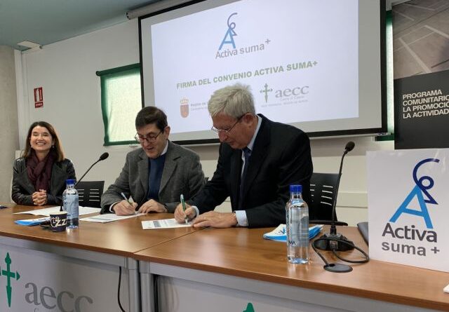 El consejero de Salud, Manuel Villegas, como presidente del Patronato de la Fundación para la Formación e Investigación Sanitarias (FFIS), y el presidente de la Asociación Española contra el Cáncer (AECC), Manuel Molina Boix, firmaron hoy este acuerdo, destinado inicialmente a la población comprendida entre 40 y 69 años del área de Murcia, y cuyo objetivo principal es fomentar conductas y estilos de vida saludables con ejercicio físico.