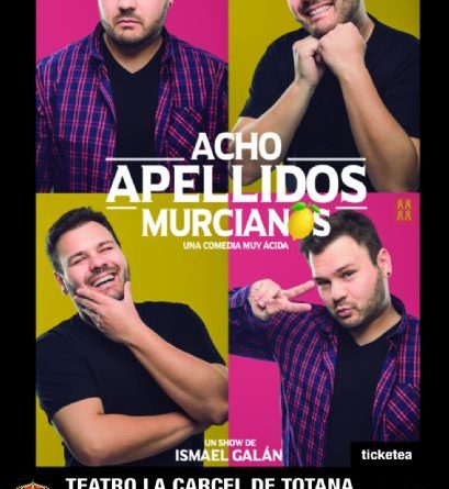 La Concejalía de Cultura oferta, dentro de la programación del «Totana Cultural», el próximo 23 de febrero, a las 21:30 horas, el show-espectáculo «Acho apellidos murcianos», del cómico Ismael Galán, en el teatro «Ginés Rosa», del Centro Sociocultural «La Cárcel».
