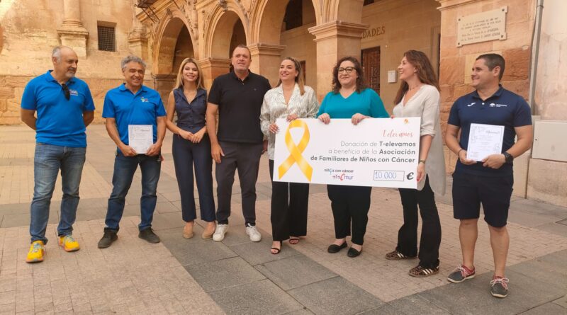 Lorca, 7 de junio de 2024. La sociedad, el deporte lorquino y dos clubes veteranos como son la Asociación Lorca-Santiago y La Carrasca han demostrado, una vez más, que Lorca es un municipio volcado con las iniciativas solidarias. El concejal de Deportes, Juan Miguel Bayonas, junto a la edil de Oenegés, Belén Díaz, han presidido hoy en la Plaza de España al acto de entrega a la Asociación de Familiares de Niños con Cáncer de la Región de Murcia (AFACMUR) de los 10.000 euros recaudados en la prueba benéfica Non Stop LorcaxTriana, puesta en marcha por iniciativa de la asociación T-Elevamos, creada por la familia de Triana Ramos, la pequeña lorquina diagnosticada de un tumor endodérmico.