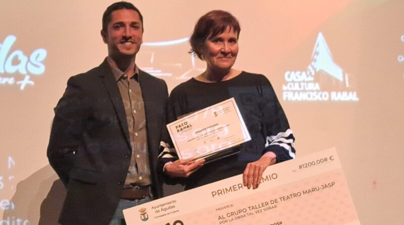 El mes de noviembre en Águilas tiene nombre propio: Paco Rabal, ya que desde hace más de 20 años se celebra el Certamen de Teatro Aficionado que lleva el nombre del insigne actor aguileño. De las cuatro obras a concurso, “Tal vez soñar”, de Maru-Jasp, se alzó con el primer premio, de 1.200 euros. Hizo entrega del diploma, trofeo y cheque el alcalde de Águilas, Cristóbal Casado. Esta comedia, llena de humor y de amor, emociones a flor de piel, dudas entre el más allá y el más acá, también se hizo con el premio a la mejor dirección y mejor interpretación femenina.