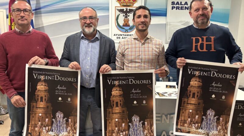 El alcalde de Águilas, Cristóbal Casado, junto al edil de Cultura, José Antonio Consentino, el presidente del Paso Azul, José Cáceres, y el párroco de la iglesia de San José, José Antonio Cano, eran los encargados de presentar ayer el programa de actos con motivo de la festividad de la Patrona de Águilas que tendrá lugar el próximo 27 de marzo.